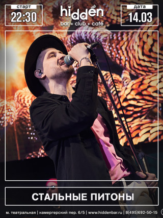подробно...Стильная кавер-группа Стальные Питоны играет в любом стиле — танцевальная музыка, рок, поп, мейнстрим, синти-поп — и на любых мероприятиях, регулярно выступает в самых известных клубах Москвы.