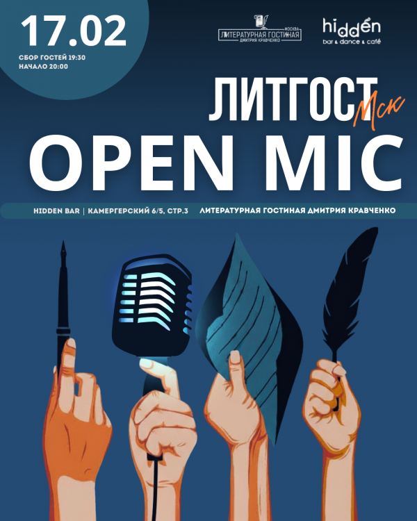 Литературная гостиная Дмитрия Кравченко в Hidden Bar (Москва) — камерный поэтический вечер в центре города. Современная поэзия, живое слово и атмосфера уютной встречи без сцены и дистанции.